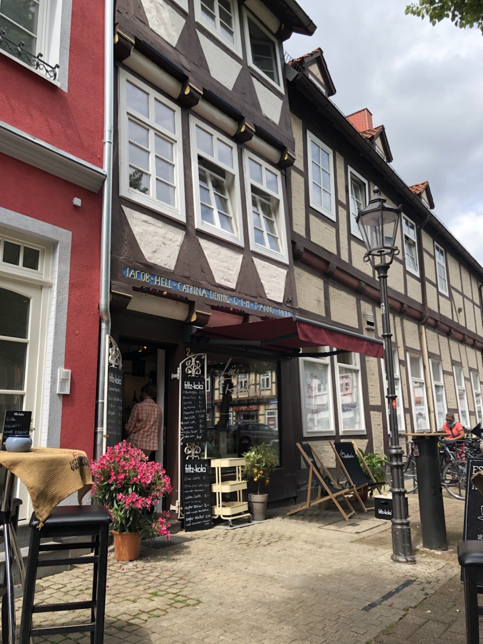 Wir erreichten die Innenstadt von Celle und waren erschlagen von dieser enormen Anzahl von Fachwerkhäusern. Echt ein toller Anblick, wenn man nicht gerade auf Bauhaus-Architektur oder irgendwelche Prachtbauten von Schinkel & Co steht und nicht zugänglich dafür ist, wo Holzbock und Borkenkäfer liebend gerne ihre Heimstatt einrichten.