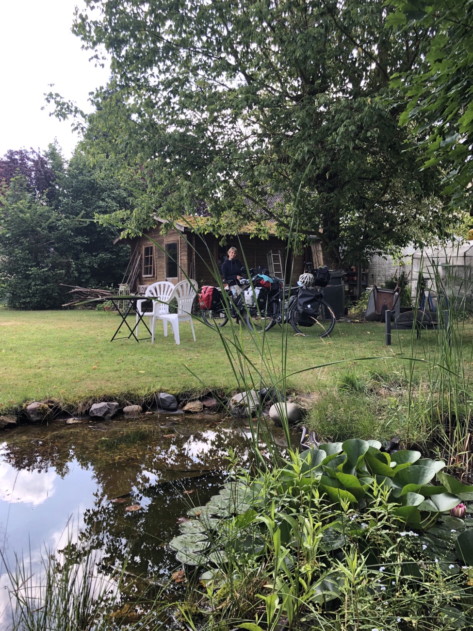 Was wir geboten bekommen für die Nacht ist die Luxusvariante – das Zelt darf im Gartenhaus trocknen, wir dürfen im Gästezimmer im Haus schlafen – nett muss man sein, Schwein muss man haben. Abends noch ein gemeinsames Schwätzchen, morgens bekommen wir vor der Weiterfahrt ein leckeres Frühstück mit ordentlich starkem Kaffee für mich und einem Tee für Anja kredenzt. Mann glücklich… 😉