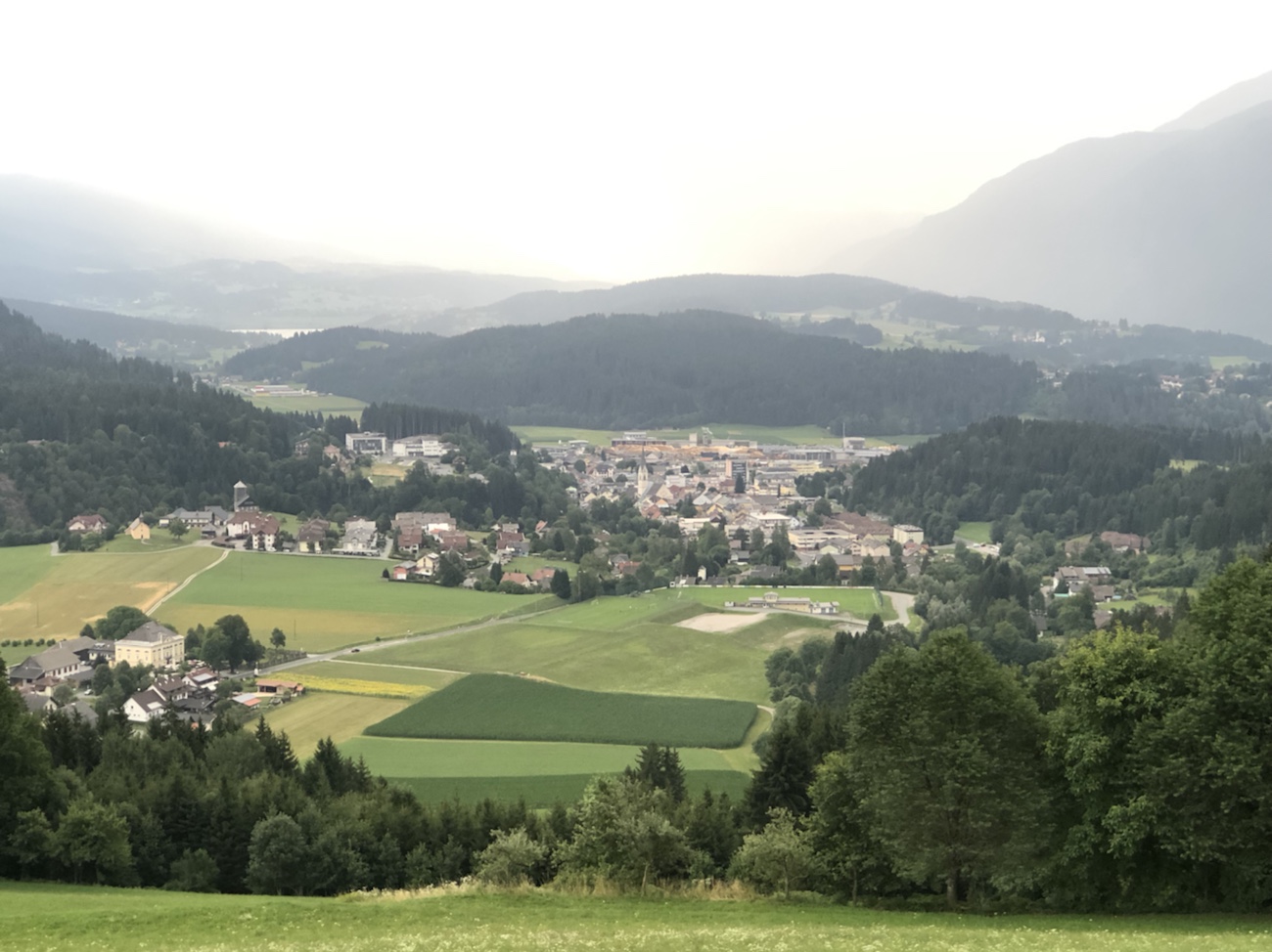 Auf dem Weg zurück zum Auto machten wir noch einen kurzen Stopp zum Stadtbummel durch Villach und gönnten uns noch eine Kugel Eis bzw. einen Kaffee. Als dunkle Wolken aufzogen, beeilten wir uns zum Auto zurückzukommen. Zwar waren die in den letzten Tagen immer wieder angesagten Gewitter bisher ausgeblieben, aber jetzt sah es wirklich nach Regen aus… Zum Glück ging der Starkregen erst runter, als wir bereits wieder im Auto auf dem Rückweg nach Hermagor waren. Dann allerdings so stark, dass man lieber deutlich langsamer als erlaubt fuhr!