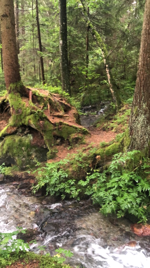 Nahe am Forellenhof gelegen entspringt die Tiebel und da wir bis zur reservierten Uhrzeit des Tisches noch etwas Zeit hatten, sind wir den Weg zur Tiebelquelle gelaufen. Zig kleine Bachläufe suchten sich ihren Weg durch den Wald. Fast mystisch stieg hier und da Feuchtigkeit auf, als wenn der Boden dampfen würde. Wohin man ging, überall tauchte wieder ein neuer Zufluss auf – und es plätscherte und gurgelte irgendwie recht laut um uns herum. Es war ein feuchtes, aber sehr schönes Erlebnis. Am Waldeingang machte sich trotz des kühlen und nassen Wetters ein süßlicher Duft von Himbeeren bemerkbar bevor wir die ersten überhaupt erblickten. Das habe ich so auch selten erlebt! So wurden wir mit vielen leckten, wildenwachsenden Himbeeren belohnt, die wir uns haben schmecken lassen.