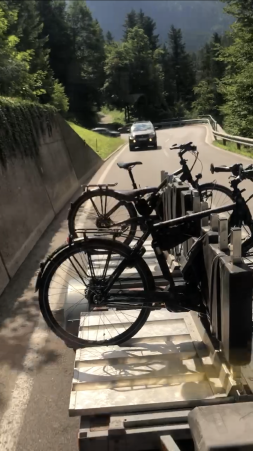 Nun sind wir also unterwegs an der Drau. Wir wollten möglichst weit an der Quelle beginnen und haben daher die Möglichkeit genutzt, die Räder und uns vom Gailtal ins Drautal mit dem Bus über den Berg transportieren zu lassen. Wir sind aufgrund unserer Touristenkarte umsonst gefahren und die Räder durften nach vorheriger Anmeldung für 10,-€ insgesamt mitfahren.