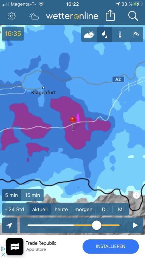 Wie bereits beschrieben, sah die Wetterlage mit der Aussicht auf viel Regen und Gewitter in den kommenden beiden Tagen nicht so berühmt aus und auch die Suche nach einer Unterkunft – egal ob Zeltplatz oder Zimmer – war nicht erfolgreich und bis nach Slowenien rein, wollten wir sowieso nicht unbedingt. So entschieden wir uns, die Drau nicht weiterzuverfolgen.