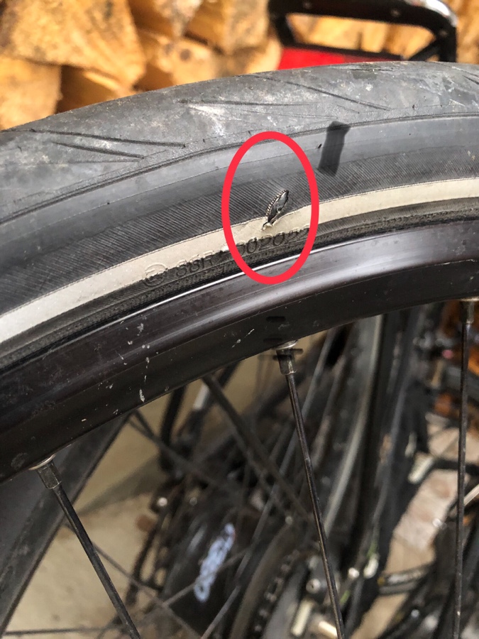 Wir hatten Klagenfurt gerade erreicht, da klirrte es, es gab einen Knall und ein pfffffffffffff – und Jörg fuhr auf der Felge seines Vorderrades. Oh man, auch das noch! Der dunkle Himmel ließ auch den nächsten Regen vermuten…. Also schnell zur Tankstelle in Sichtweite geschoben und – mal eben – den Schlauch geflickt und gewechselt unter dem schützenden Dach der Tankstelle.