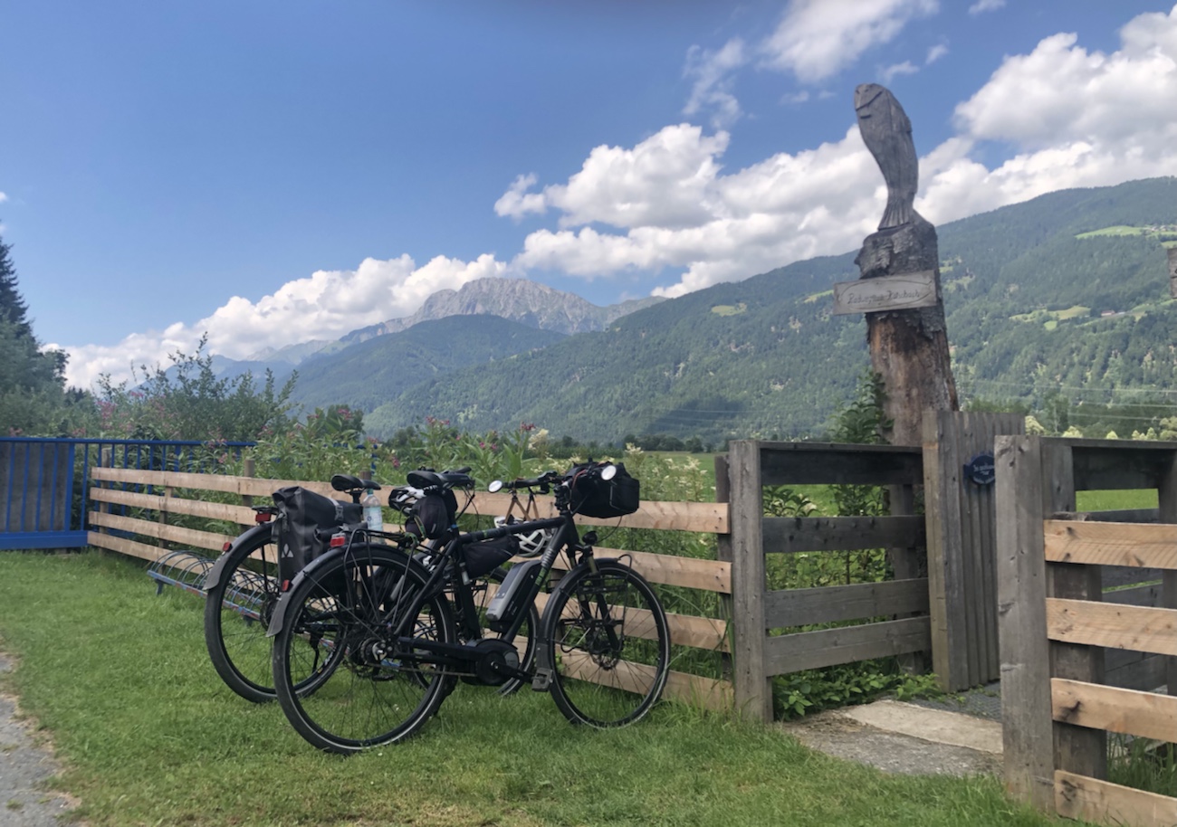 Am Montag wählten wir eine etwas entspanntere Radelstrecke an der Drau entlang von Villach bis nach Wernberg und wieder zurück. Auch auf dieser Strecke mussten wir dann zwar einen etwas steileren Anstieg bewältigen, was jedoch insbesondere aufgrund des Asphalts deutlich einfacher war! In Wernberg angekommen, machten wir eine Mittagspause bei Fruhmann – auch eine Anlaufstelle bei jedem Besuch in der alten Heimat! Die Kärntner Kasnudeln sind hier einfach die Besten!