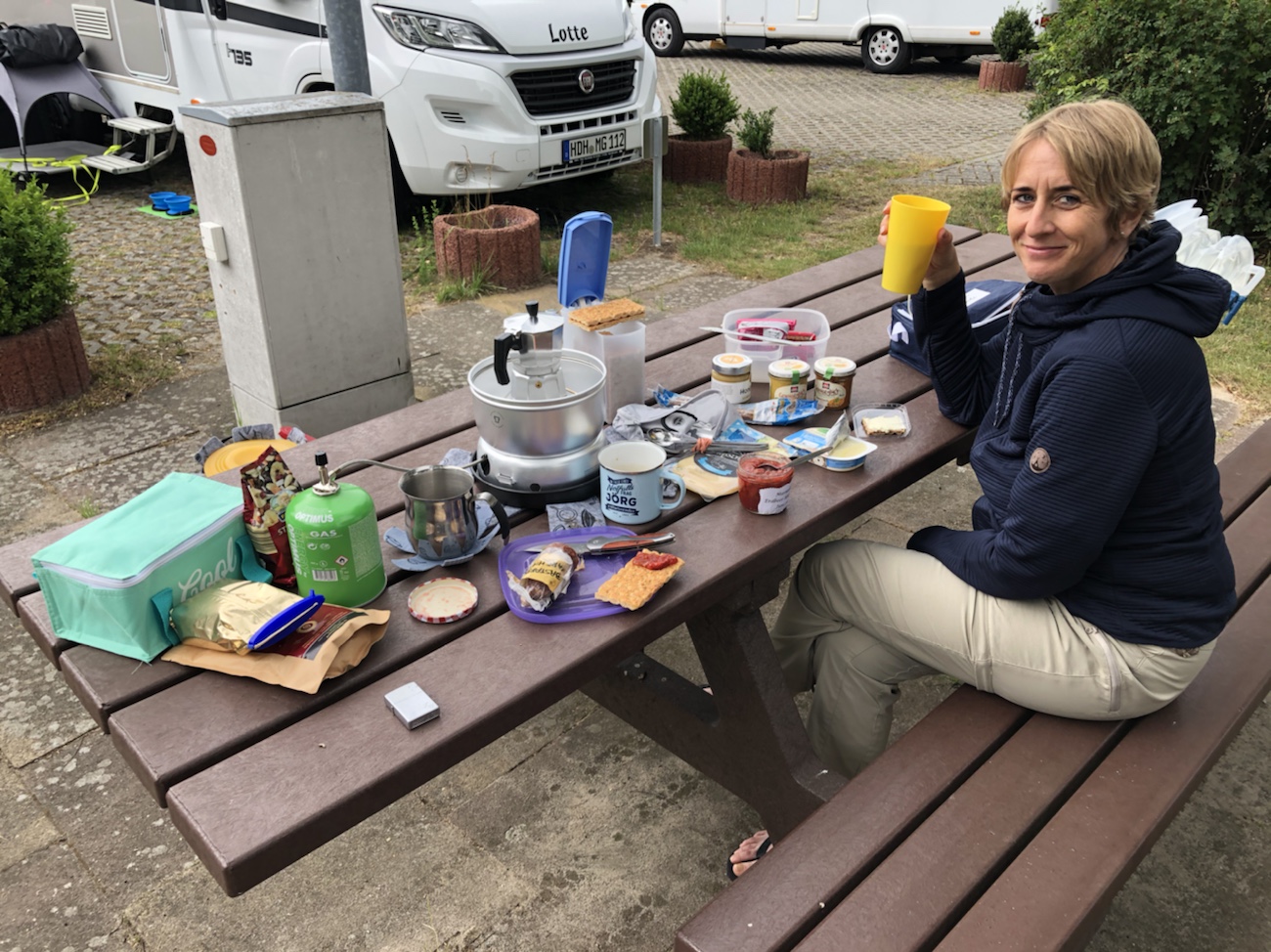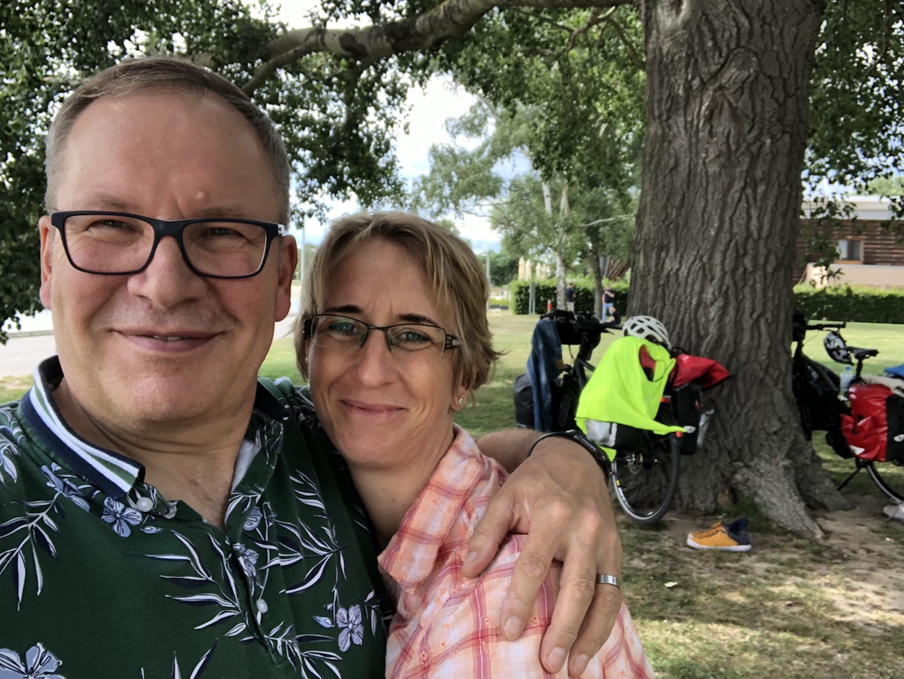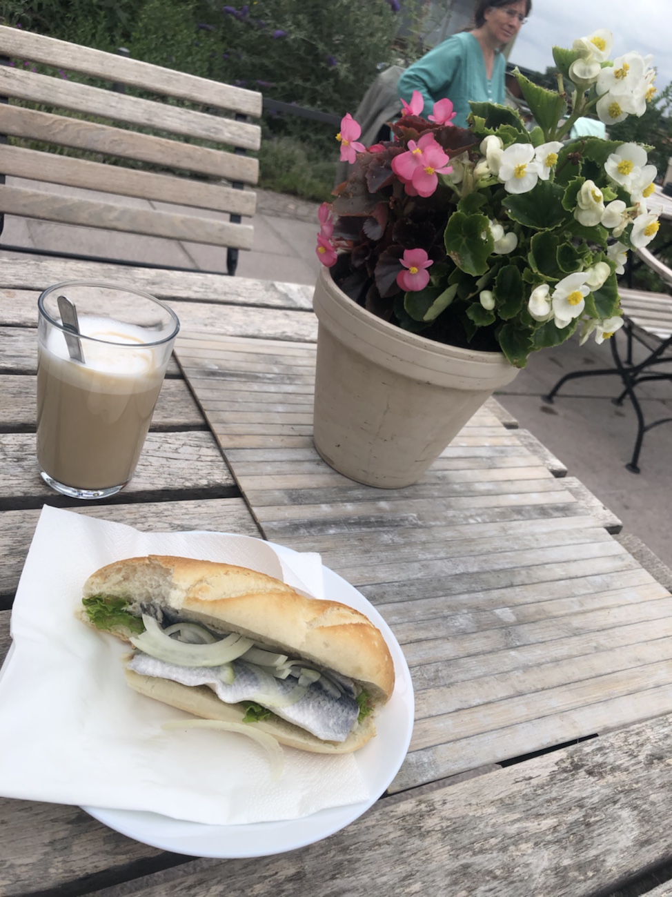 Ratzeburg war unser erster Anlaufpunkt des Tages. Dort haben wir Station gemacht und uns den Ort ein wenig angesehen. Vor der Weiterfahrt noch kurz ein Fischbrötchen verzehrt – nicht, dass ich noch schlechte Laune bekomme. Entlang des Ratzeburger Sees, übergehend in lange Wald- und Feldpassagen, fuhren wir direkt bis nach Lübeck. Ich hatte meine neue Brille dort zur Filiale einer nicht weiter zu benennenden Optikerkette schicken lassen, da sie entgegen aller Versprechungen vor unserem Starttermin nicht mehr fertig geworden war. Daher führte uns der Weg schnurstracks in die Einkaufszone. Die neue Brille im Gepäck ging es noch zum Outdoor-Laden. Zwei kleine und leichte Stühle sollten es sein, die uns auf den Zeltplätzen das Sitzen (und für mich auch das Aufstehen) etwas komfortabler machen sollen. Was uns gefiel und zusagte, war preislich gesehen aber in Bereichen, die noch einige Nächte der reiflichen Überlegung nach sich ziehen werden. Ging ja bisher auch ohne…